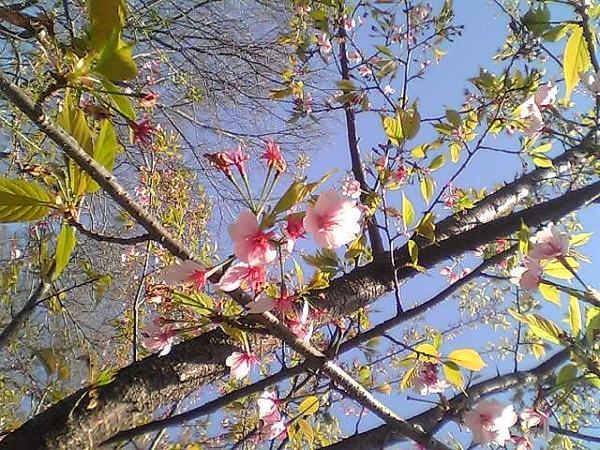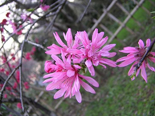 花はピンク。木の切り口は鮮やかな赤。